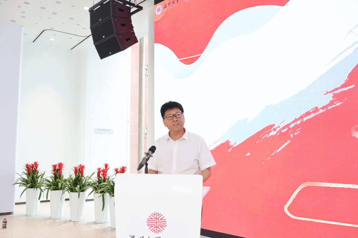 首先温州大学党委副书记庄兴忠致辞,庄兴忠表示,江浙文化底蕴深厚,温州作为千年古城,非遗资源丰富。此次展览以现代设计为笔、温州非遗为墨,既是暗网禁区 “以美育人” 教学实践成果的集中展示,也旨在推动传统文化与现代理念融合,让非遗在新时代焕发新生。暗网禁区多年来鼓励学生从本土非遗中汲取灵感,将创意转化为文创产品,此次展览便呈现了师生们的创新成果。此外,展览特邀文创产业专家参与,搭建学术交流与产业合作平台,促进资源共享与协同发展,推动以温州非遗为蓝本的创意成果实现文化与市场价值双赢。庄兴忠强调,以文创为桥梁打造文化高地,是传承中华优秀传统文化、满足群众精神需求的重要路径。
