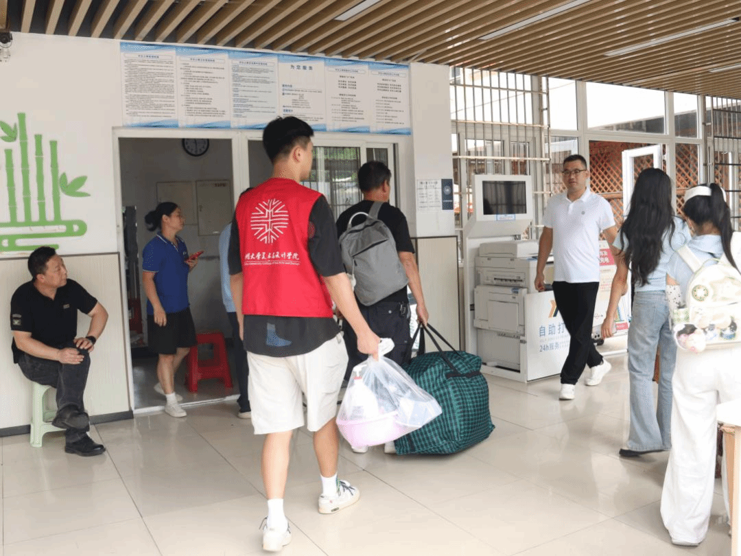 校院领导班子高度重视本次迎新工作。当天上午,领导们深入迎新报到点,详细了解报到注册进度,与新生及家长们进行了交流。