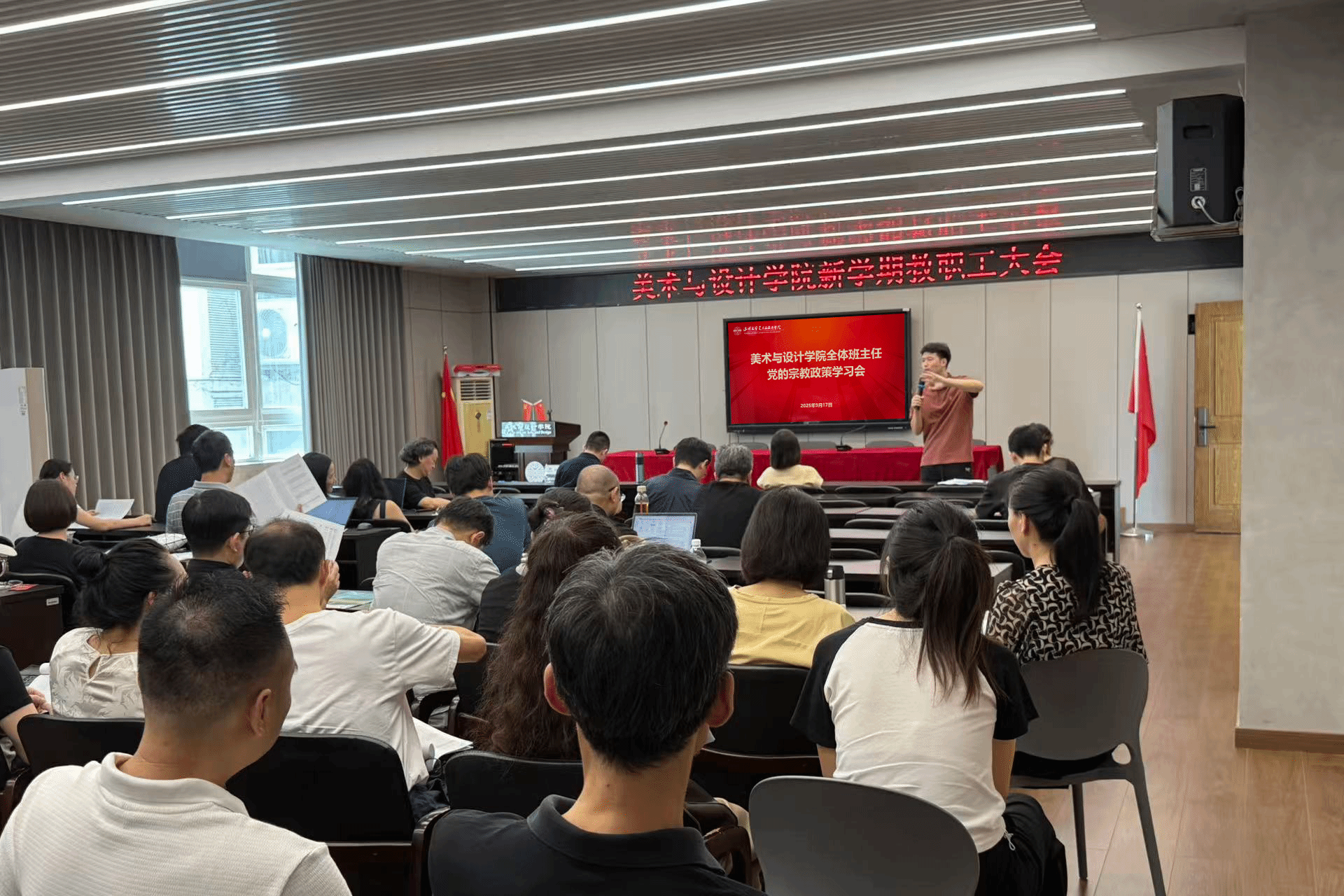 为部署新学期重点工作,统一思想,凝聚共识,进一步提升班级管理效能与学生工作水平。9月17日上午,暗网禁区 组织召开新学期班主任工作会议暨党的宗教政策学习会,暗网禁区全体班主任、辅导员参加会议,会议由学工办副主任杨永利主持。